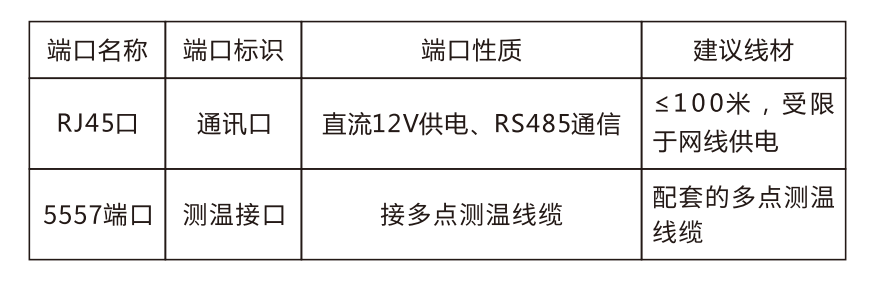 | 通信端口 | 2个RS485接口,RJ45形式,可用于级联 |