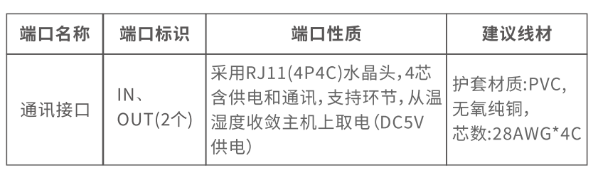 | 通讯接口 | 3路(1路IN,2路OUT),采用4芯RJ11接口 |