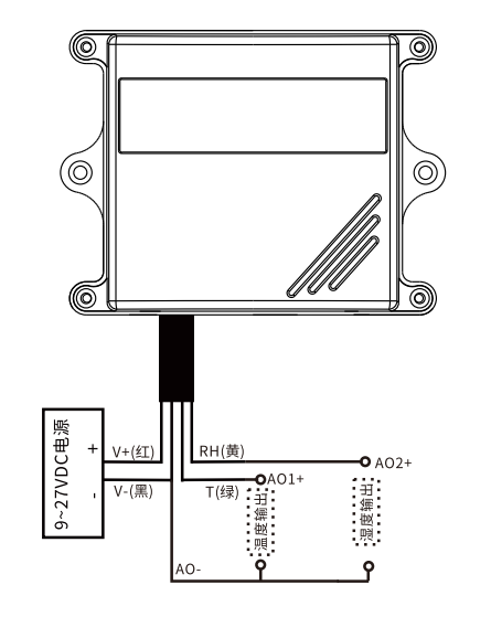 | 支持1路温湿度测量,2路电流输出,1路温度输出,1路湿度输出 |