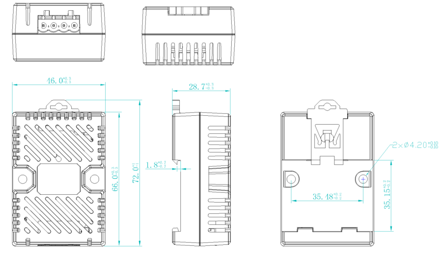 自带1路温湿度采集,1个RS485串口,对上提供标准的Modbus RTU协议