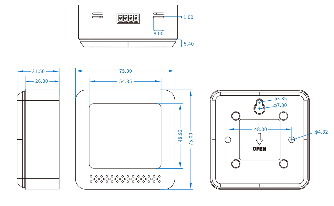 75(L)*75(W)*31.5(H)mm (±0.2mm) |