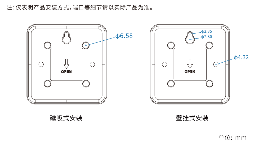 | ●安装便捷,支持磁吸、挂壁安装 |