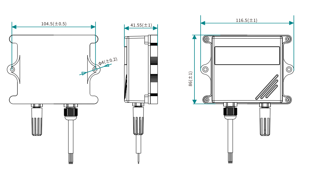 | 支持1路温湿度测量,2路电流输出,1路温度输出,1路湿度输出 |